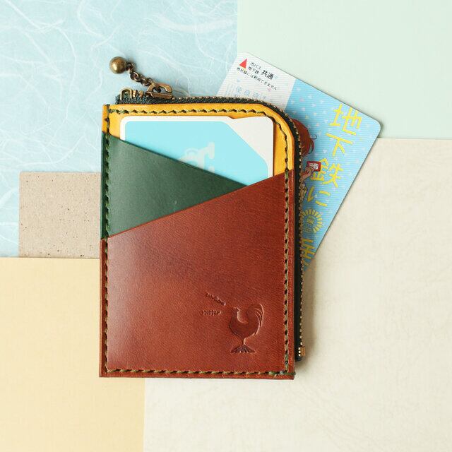 ▶︎ ICカード・切符を、表面には2箇所、裏面には1箇所収納可能。中央にはカードや鍵、コインケースに使えるファスナー付スペース