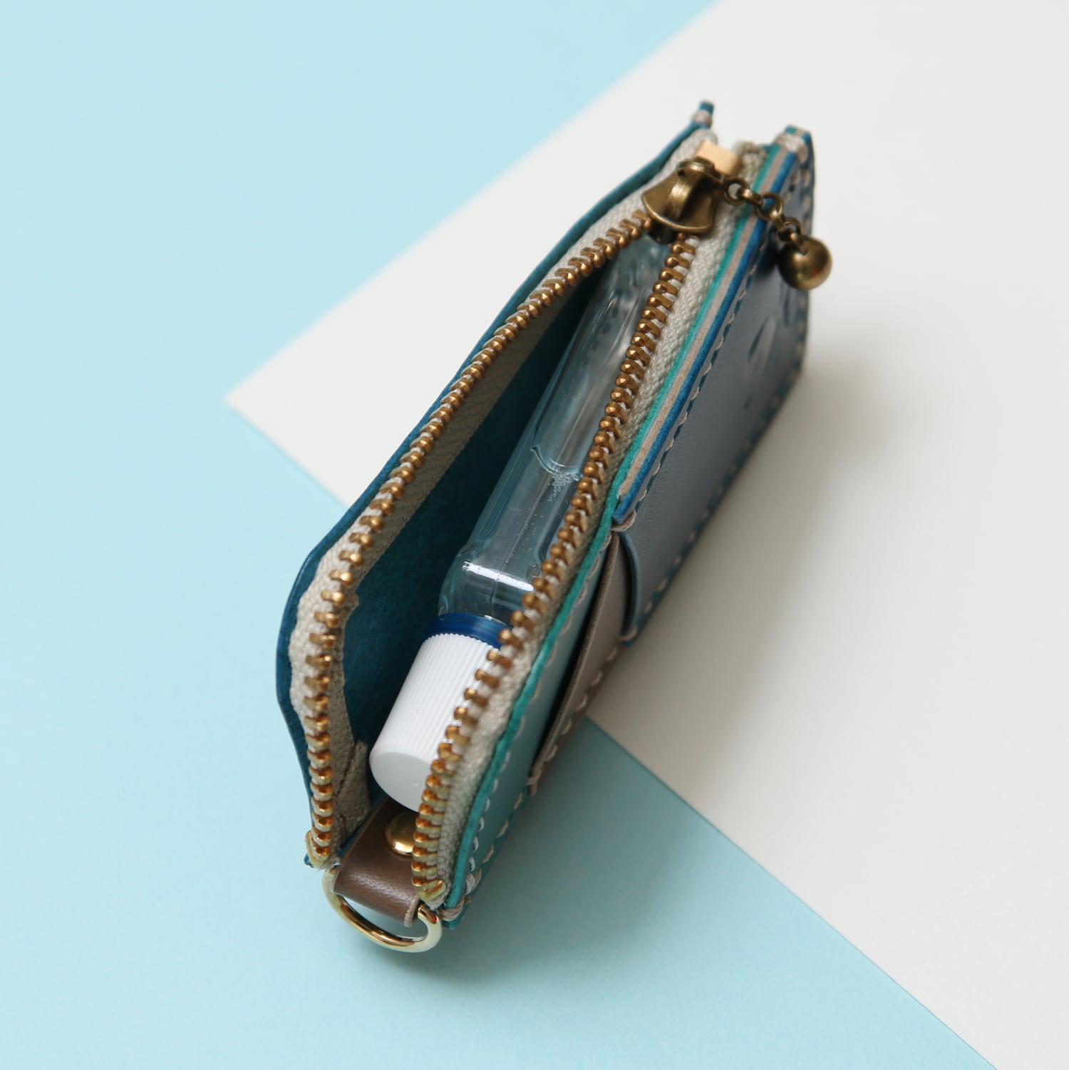 ・ボディ|表・ターコイズ、グレージュ・ネイビー/裏・ネイビー/Dカン固定革・ターコイズ