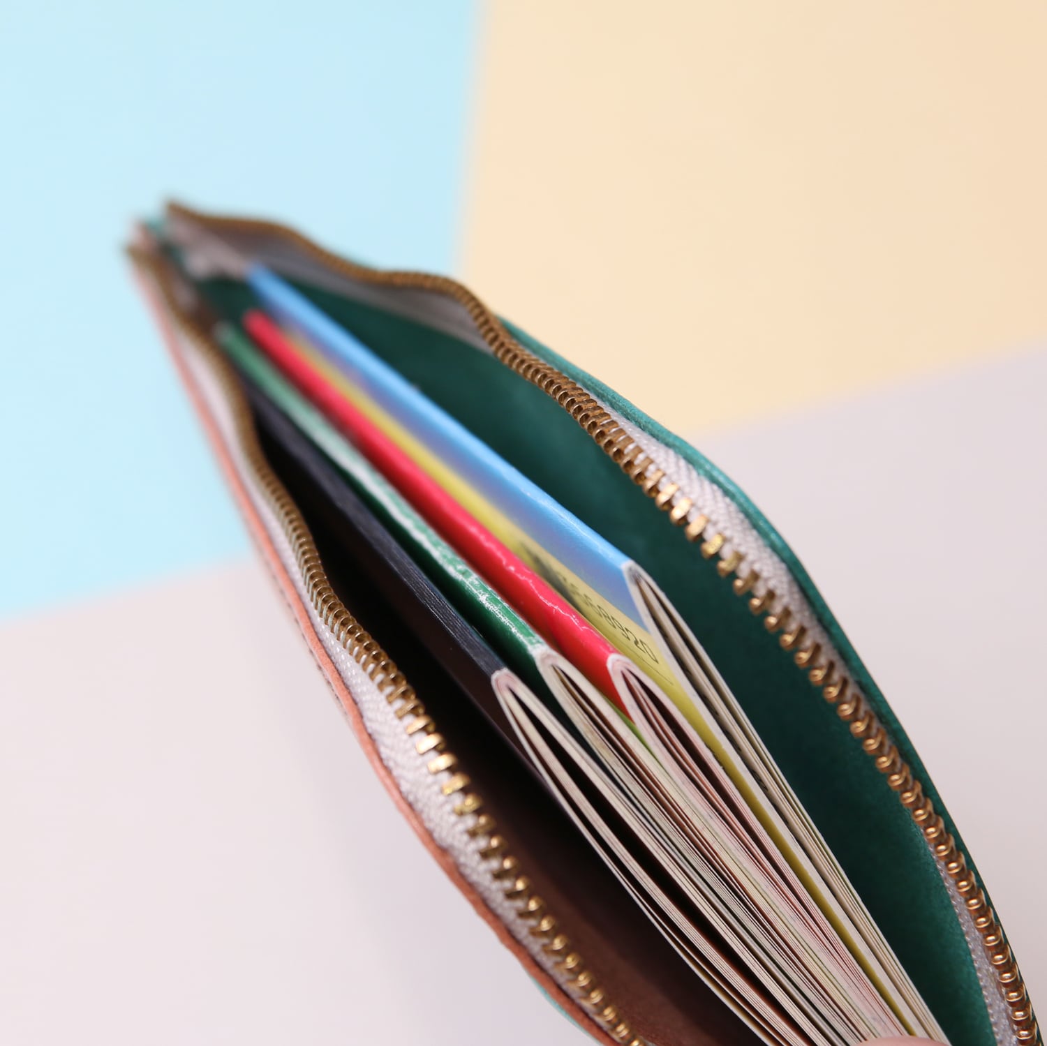 スマホやお札、通帳が収まるサイズ感で制作しました